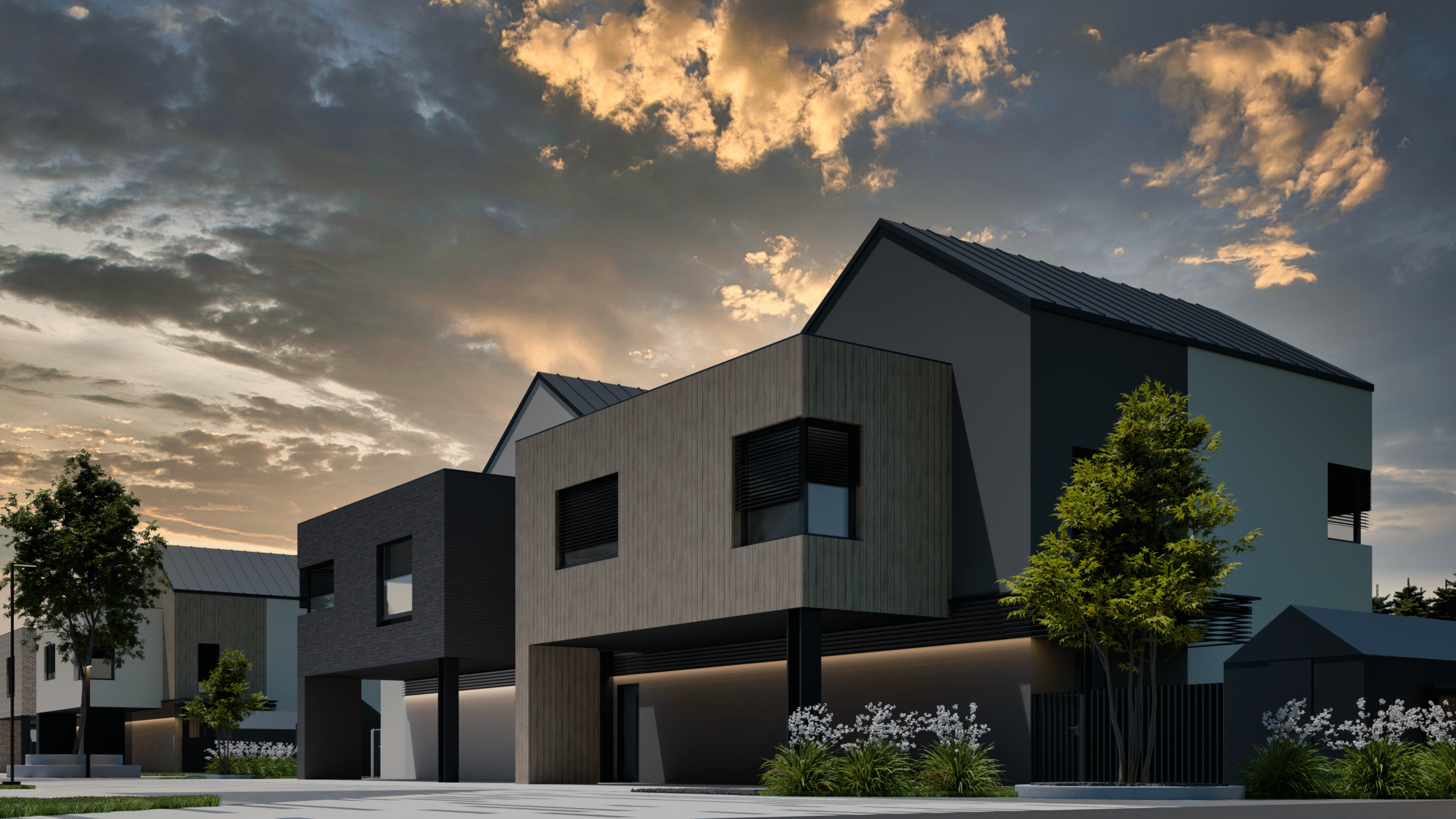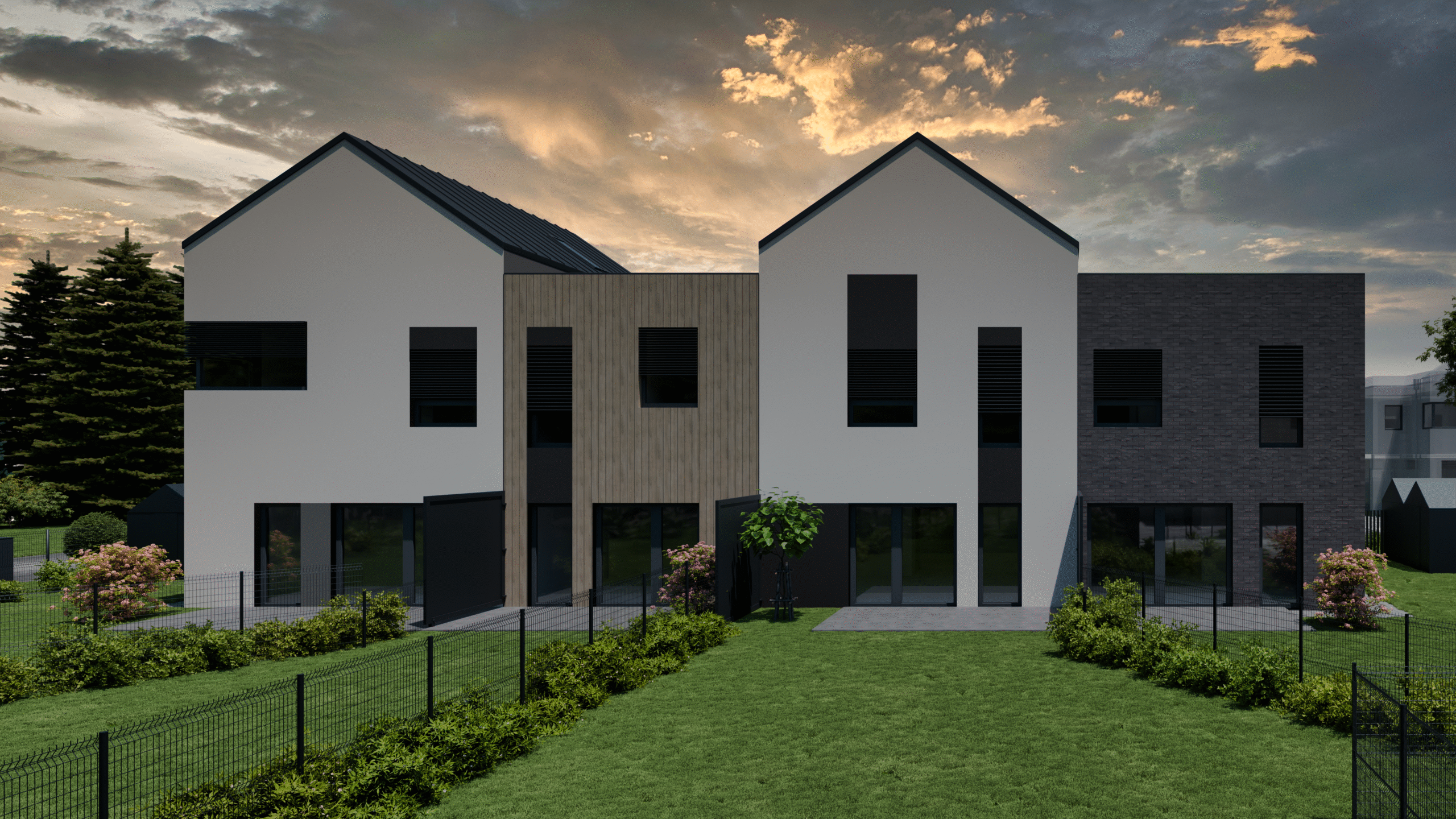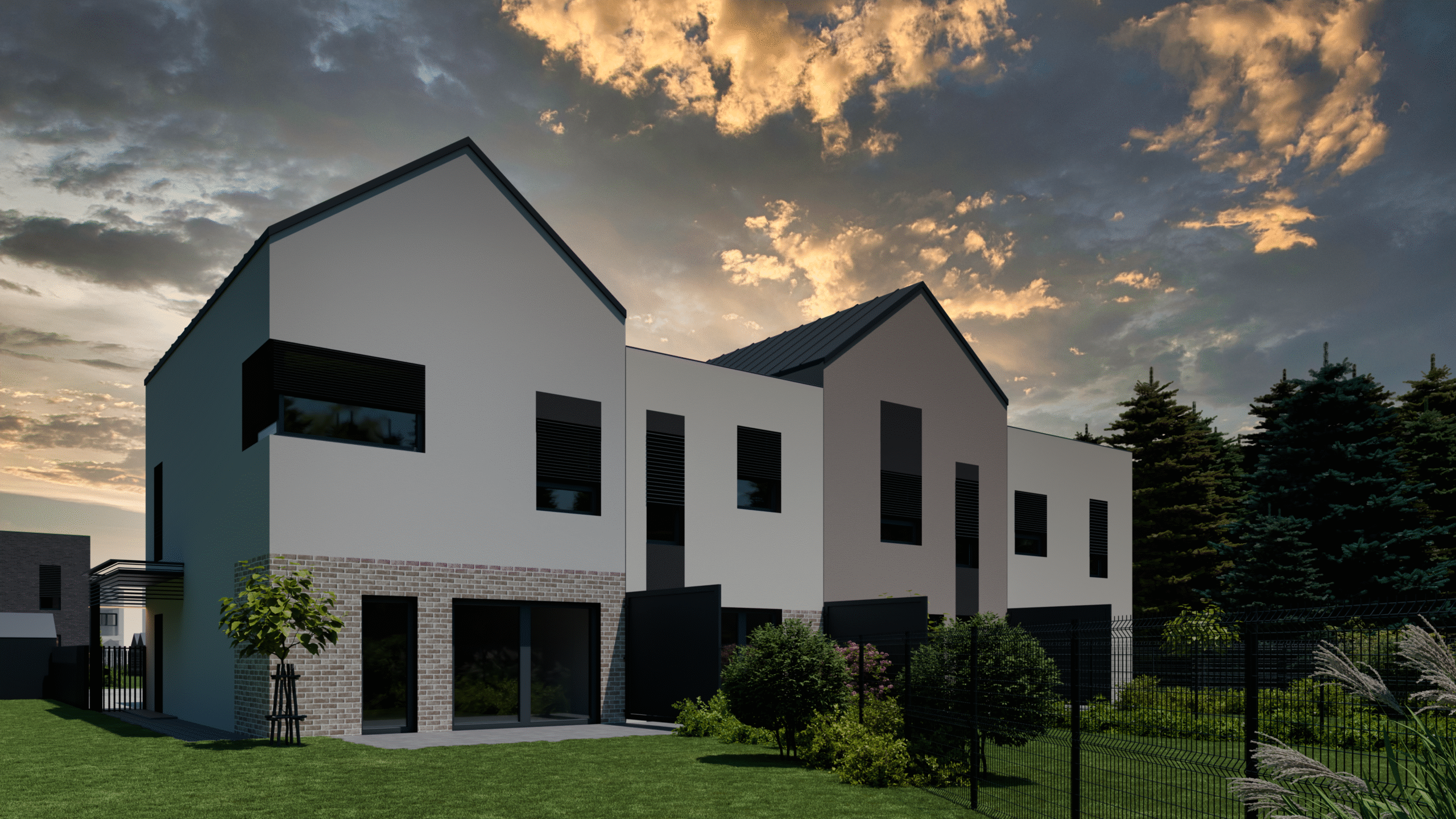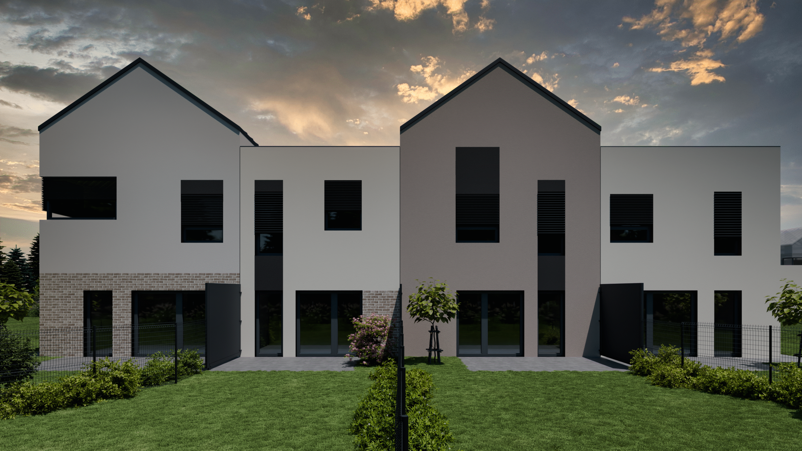 Projekt obejmuje 38 niezależnych, dwukondygnacyjnych segmentów mieszkalnych z ogrodami, oferujących funkcjonalne układy wnętrz oraz przemyślane aranżacje przestrzeni zewnętrznej, zapewniając przyszłym Mieszkańcom poczucie pełnego komfortu i swobody.
